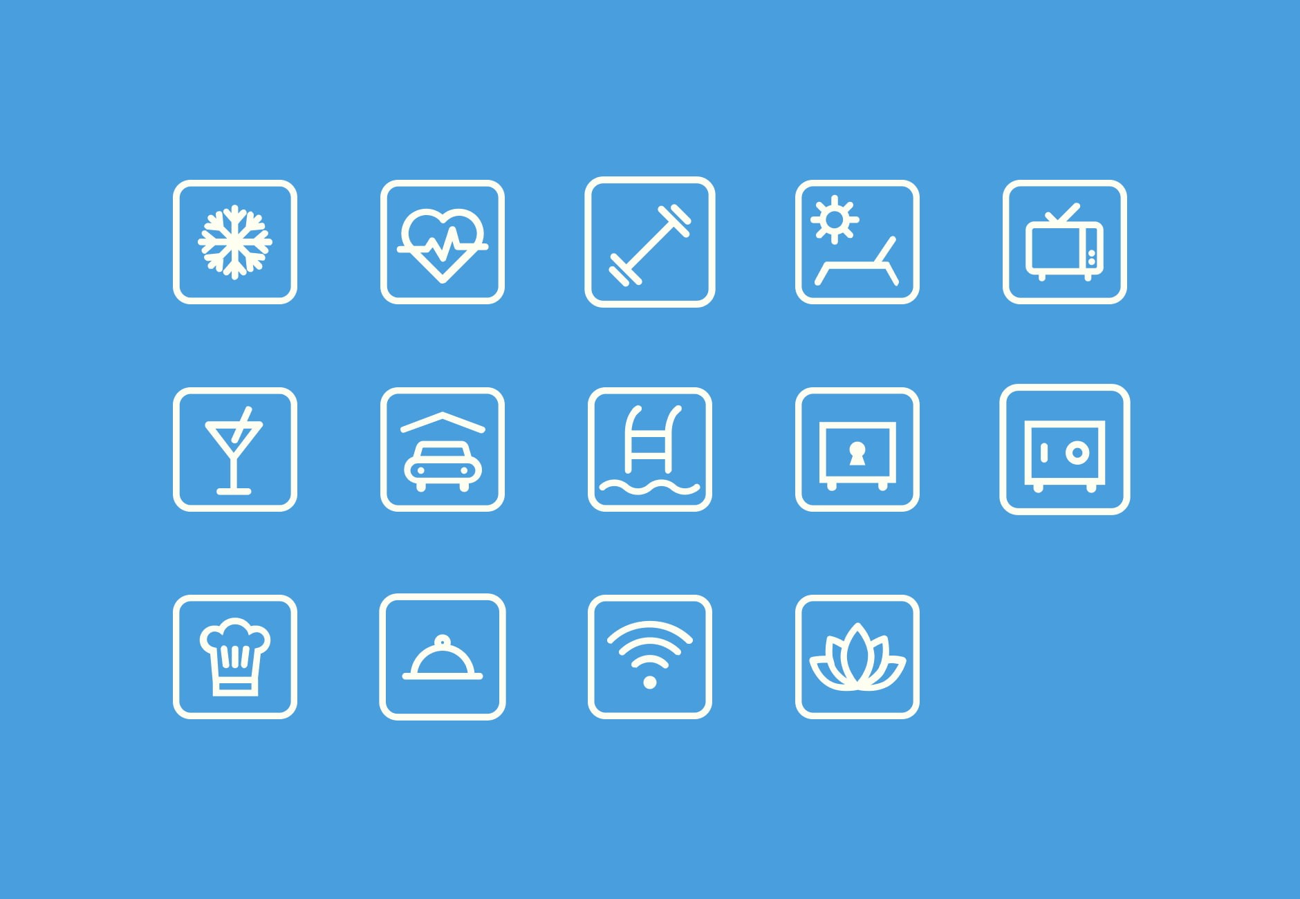 Developing cohesive sets—from job categories to hotel facilities—requires a strict underlying grid. Maintaining consistent stroke weights and corner radii across diverse subjects ensures that every individual mark feels native to the broader visual family.